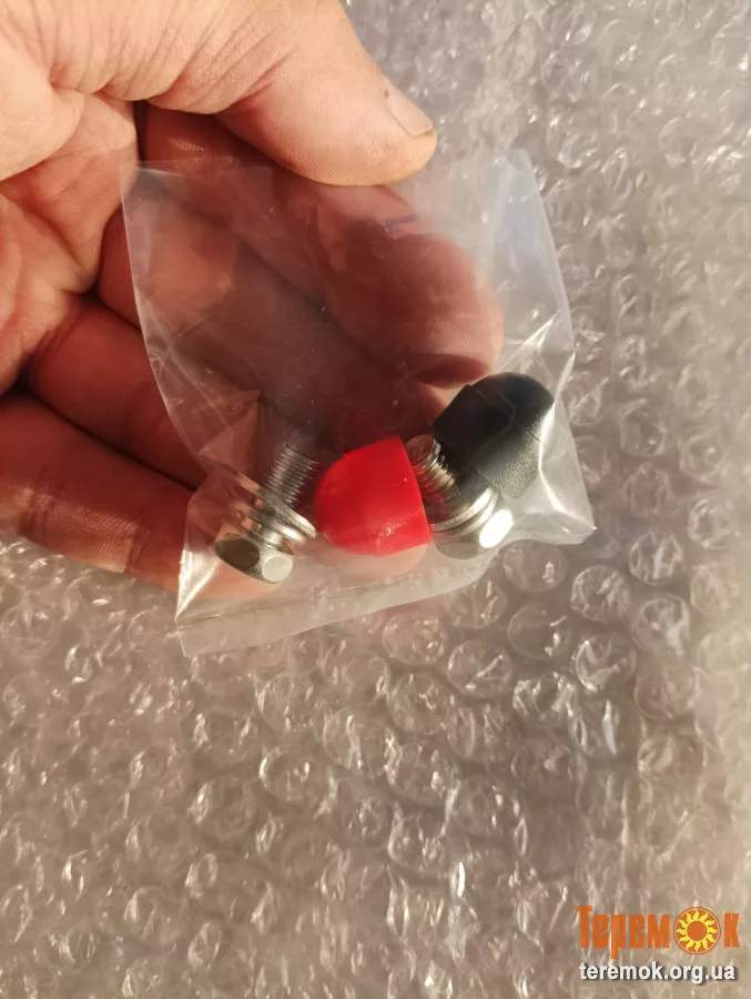 Упаковка, гвинтові зажими, ковпачки, акумулятор, інструкція
