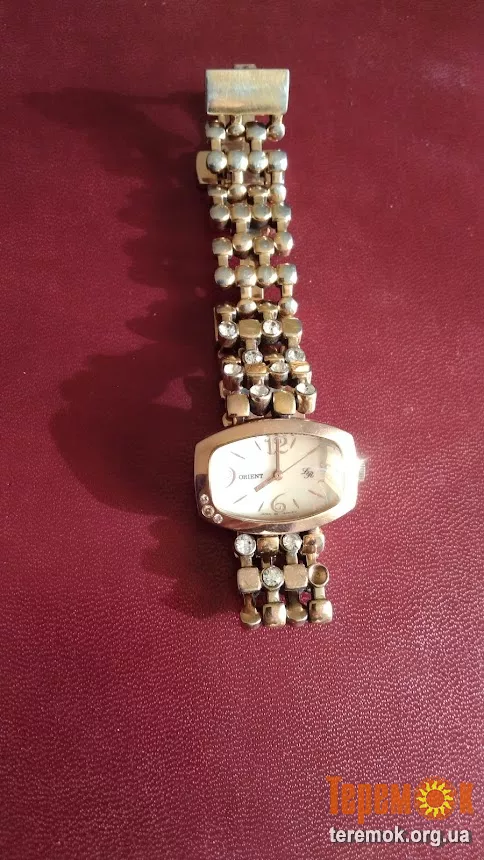 Женские часы. Ориент. Оригинальные, заводские. Стекло, метал, камни. Циферблат перламутровый. Украшают женскую руку. Интересный дизайн. Свои. Отправка по предоплате.