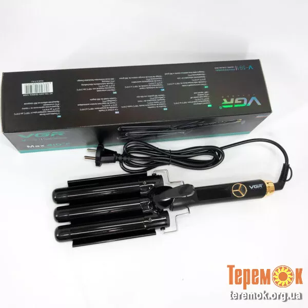 Потрійна плойка для завивки волосся VGR три хвилі діаметром 25 мм потужністю 125 Вт