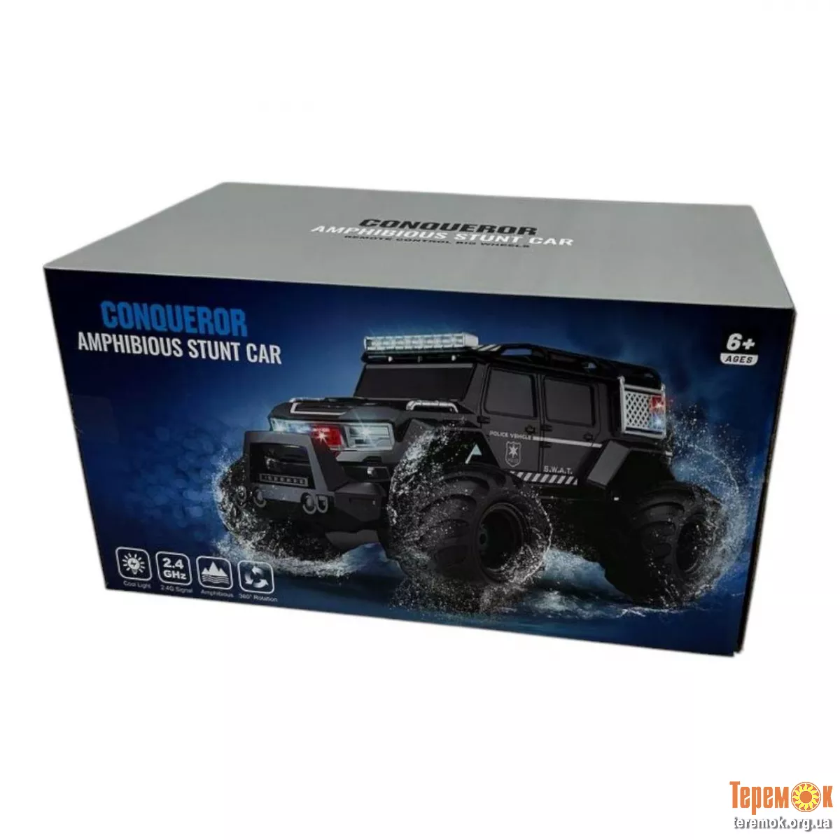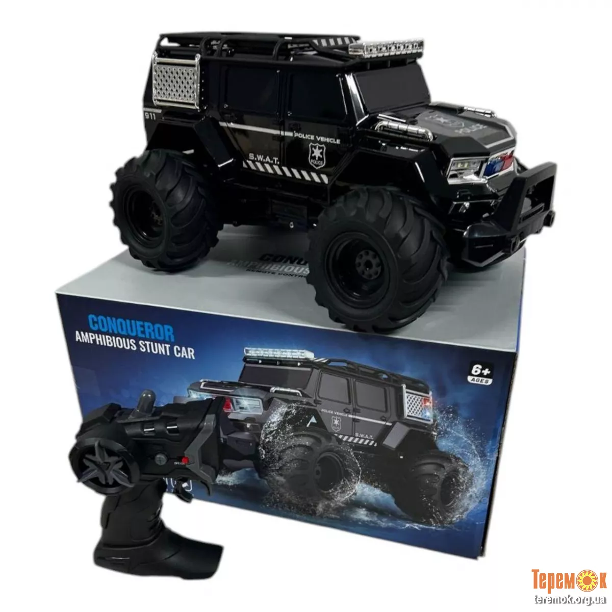 Машинка на пульті управління амфібія поліцейський джип зі фарами, що світяться