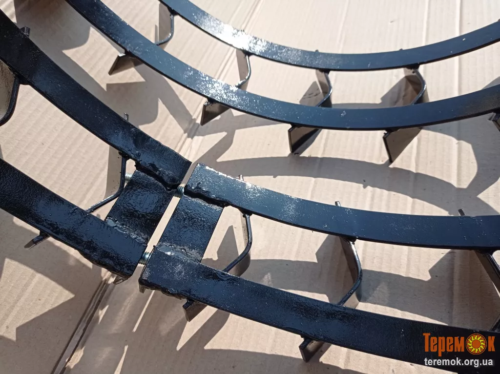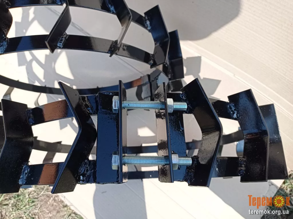 Грунтозацепы (зубья) изготовлены из стали толщиной 4 мм. и высотой 40 мм. с двухсторонним проваром что дает надежность в эксплуатации. Количество зубьев увеличено до 17 шт. (для R13) на одном колесе что дает комфортную эксплуатацию трактора по твердому грунту без вибрации и тряски!