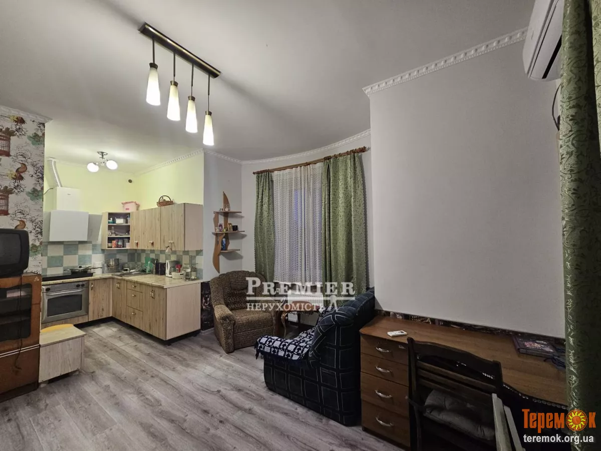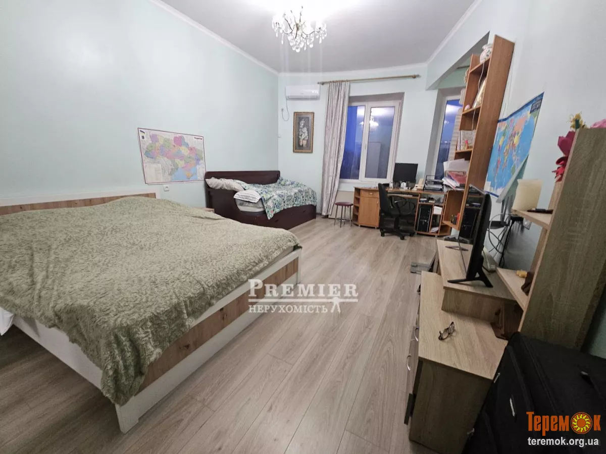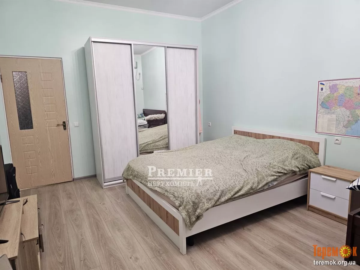 Квартира з ремонтом, санвузол облицьований плиткою, встановлена ванна, бойлер, умивальник. Кімнати з ремонтом: підлога ламінат, стіни шпалери. Кухня від будівельників. Вікна металлапластіковие, вхідні двері металеві. Близькість моря. Можливо перебудова в дві однокімнатні квартири.