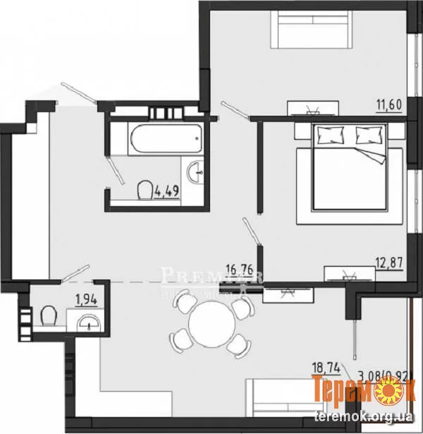 Кімнати роздільні, кухня-вітальня майже 19 кв.м із заскленим балконом, два санвузли (або 1 санвузол та вбиральня).