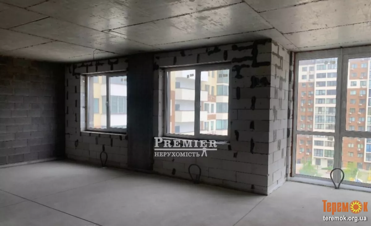 Загальна площа 55 метрів, вільне планування, ідеальний стан після забудовників, панорамні вікна, стяжка підлоги, вхідні броньовані двері, всі комунікації підведені.