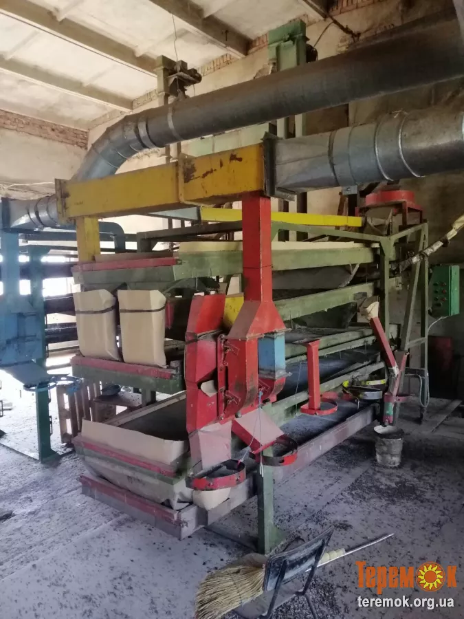 Цех крупяний. Потужність 15 кВт. 1 тона крупи у зміну: Станок шелушильний з розділенням фракцій крупи, Зерно очисна машина, 4 Елеватори , Ємність в червоному кольорі для зерна застосовується при посівній . В мене вона зі шнеком майже нова я її не застосовував . Знаходиться у Волочиську Хмельницької обл. Ціна 260000 грн. Крім цього ДКУ "українка" 2 тони в годину. Ціна 50000 грн. Млин Могилів-Подільський 7 тонн / доба. 450000 Загальна потужність всього обладнання яке я висвітлюю до 80 кВт.
