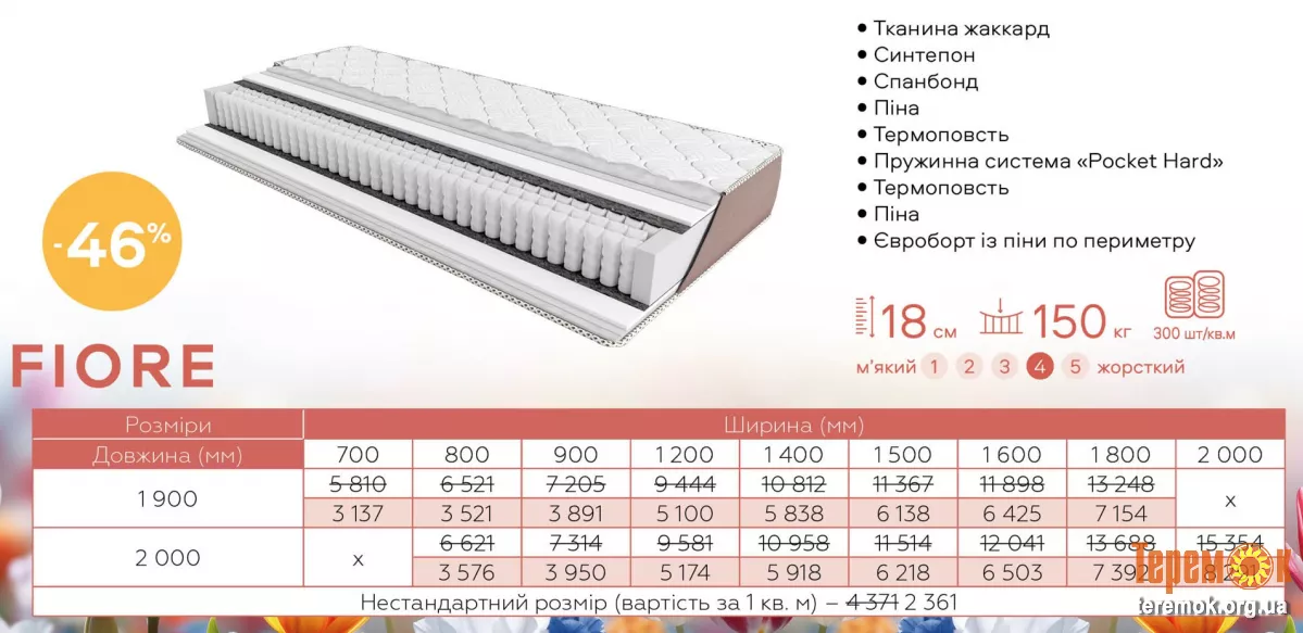 Ціна на матрац Primavera Fіоre зі знижкою 46%: