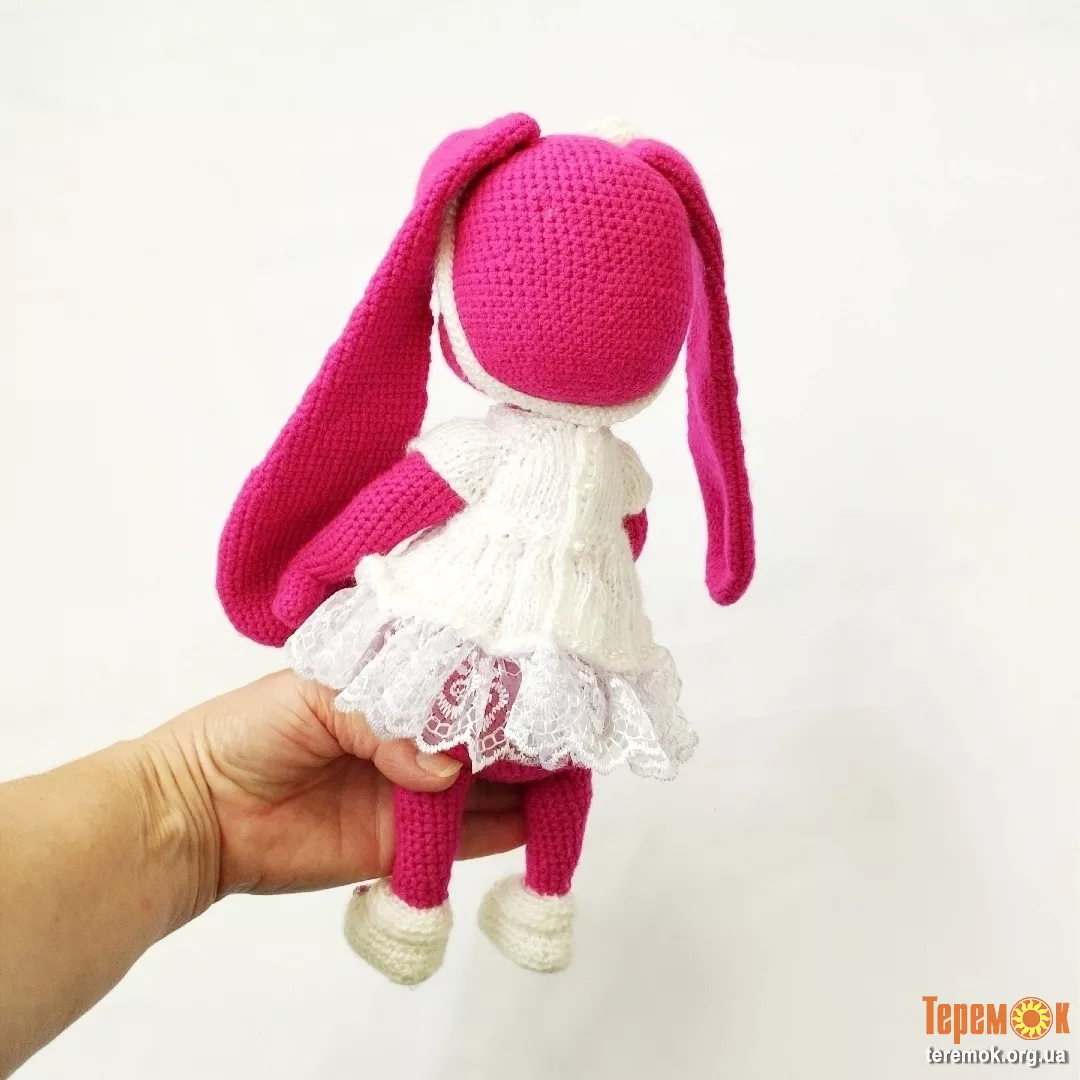 Зайчик з довгими вушками в сукні, трикотажні іграшки