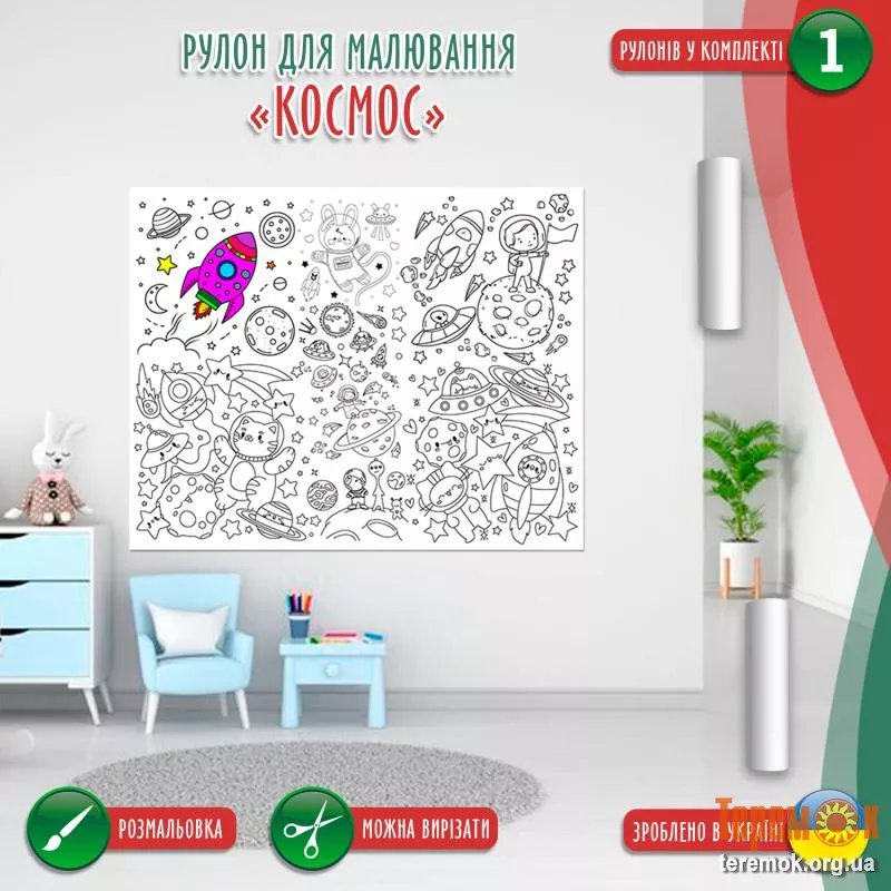 Розмальовка-рулон поєднує користь і задоволення: розвиває дрібну моторику, уважність і фантазію. Рулон легко розгортається на підлозі чи столі — малюйте вдома, у школі, в садочку або на святі. Завдяки різноманіттю тематик — від тварин до казкових світів — кожен знайде улюблений сюжет.