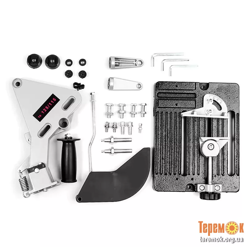 Підставка кронштейн використовуватися з кутовою шліфувальною машиною. Можливо використовувати різні диски, які ріжуть алюміній, нержавіючу сталь, залізо, ПВХ, дерево та інші матеріали. Розмір: 20 * 24 * 30см. Максимальна ширина затиску 80 мм (при 45° ширина утримування становить 40 мм)