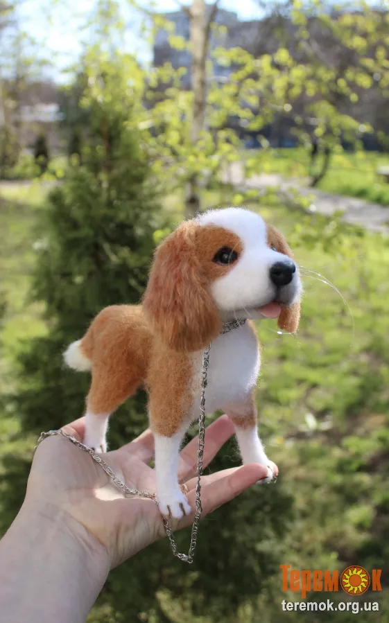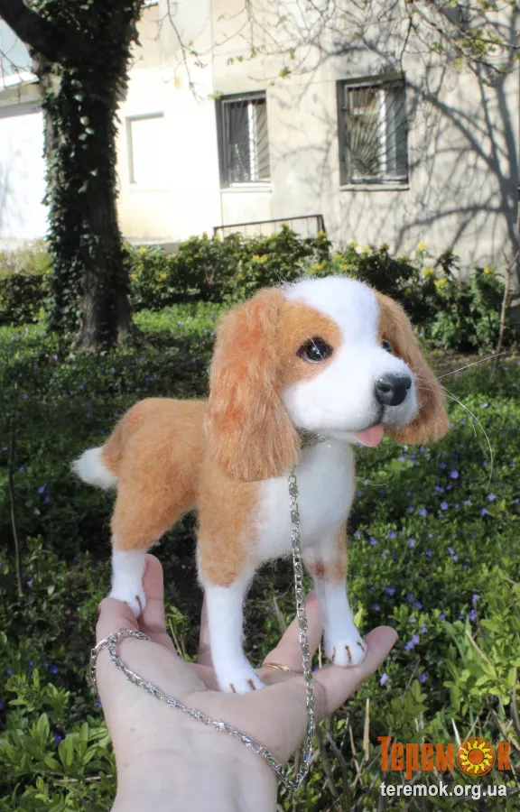 Кавалеркингчарльзспаниєль собака іграшка валяна з шерсті інтерєрна сувенір подарунок