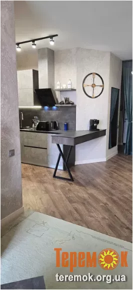 У КУХОННІЙ ЗОНІ ВСЕ Є (холодильник, мікрохвильова піч з духовкою, плита індукційна, витяжка, посудомийка). Стільниця з каменю, супер зручне та практичне миття з різними режимами подачі води. Круглий, красивий стіл та зручні стільці забезпечать комфортний прийом їжі.