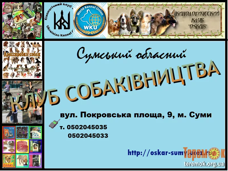 Запрошуємо всіх власників породистих собак до Сумського обласного клубу собаківництва Кінологічного Клубу України WKU – Світовий Кінологічний Союз (World Kennel Union).
