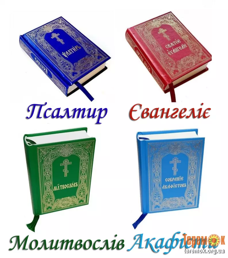 Псалтир, Євангеліє, Акафісти, Молитвослів. Комплект з 4-х книг церковнослов'янською мовою (похідний формат). Обкладинка тверда, папір білий, двоколірний друк, закладка. Розмір: 13 х 9 см, ціна 660 грн.