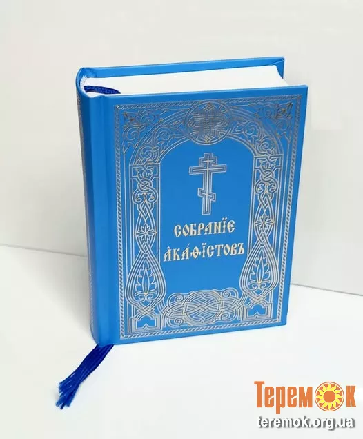 Збірник акафістів. Церковнослов'янська мова, двоколірний друк, закладка. Тверда обкладинка, 12 х 9 см, 701 стор., ціна 165 грн.
