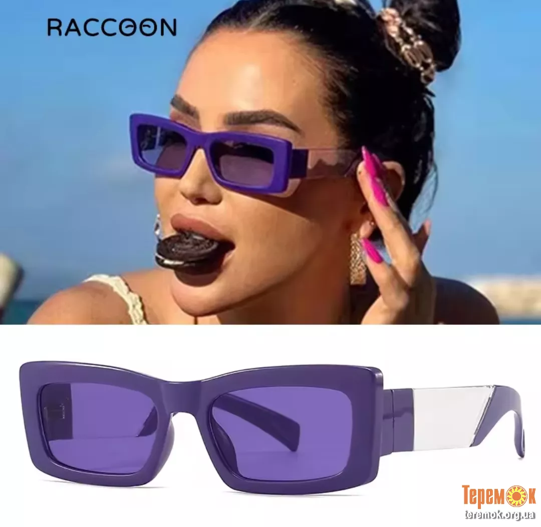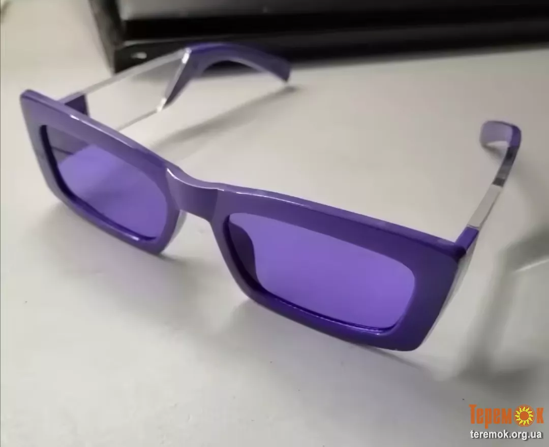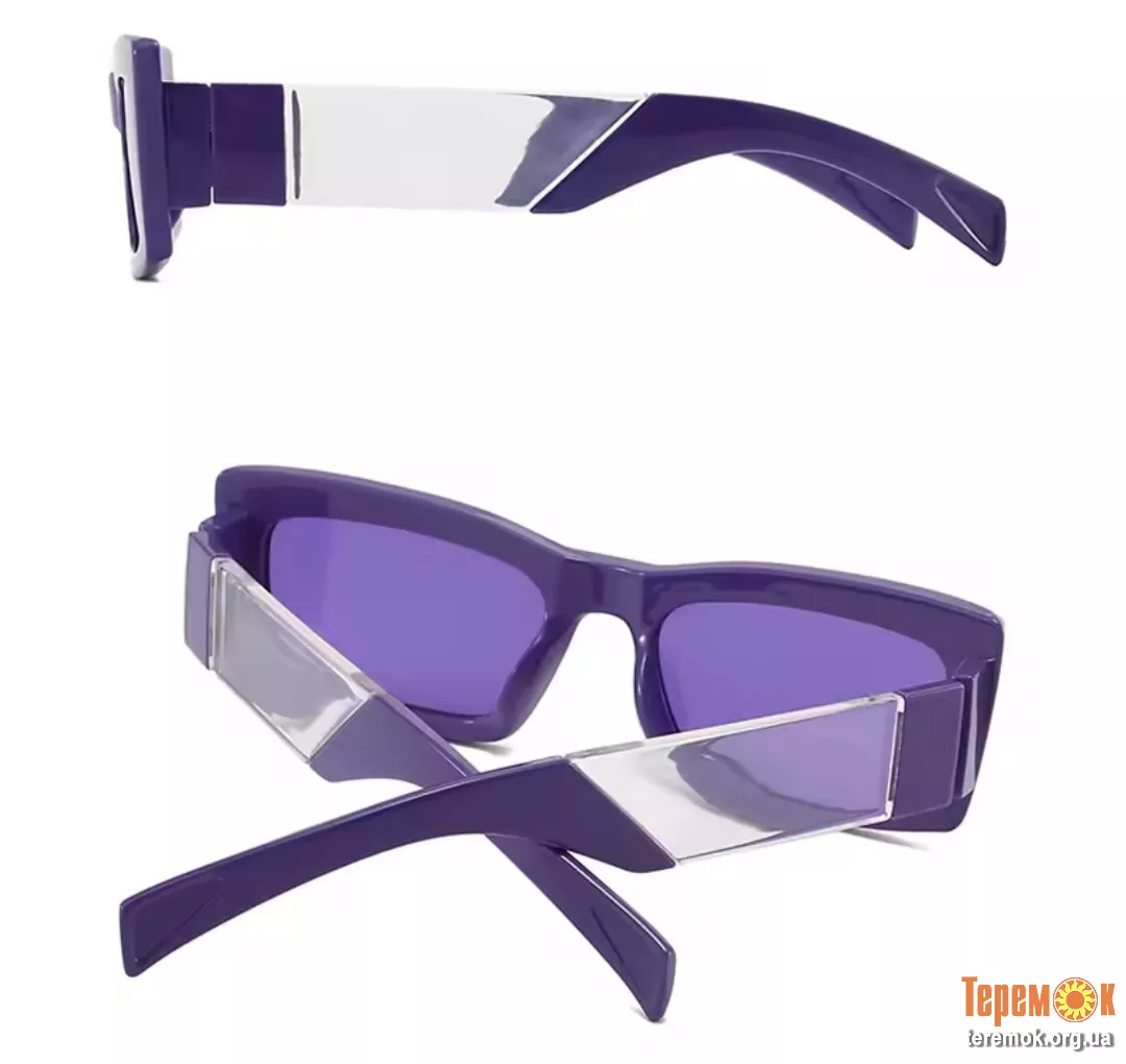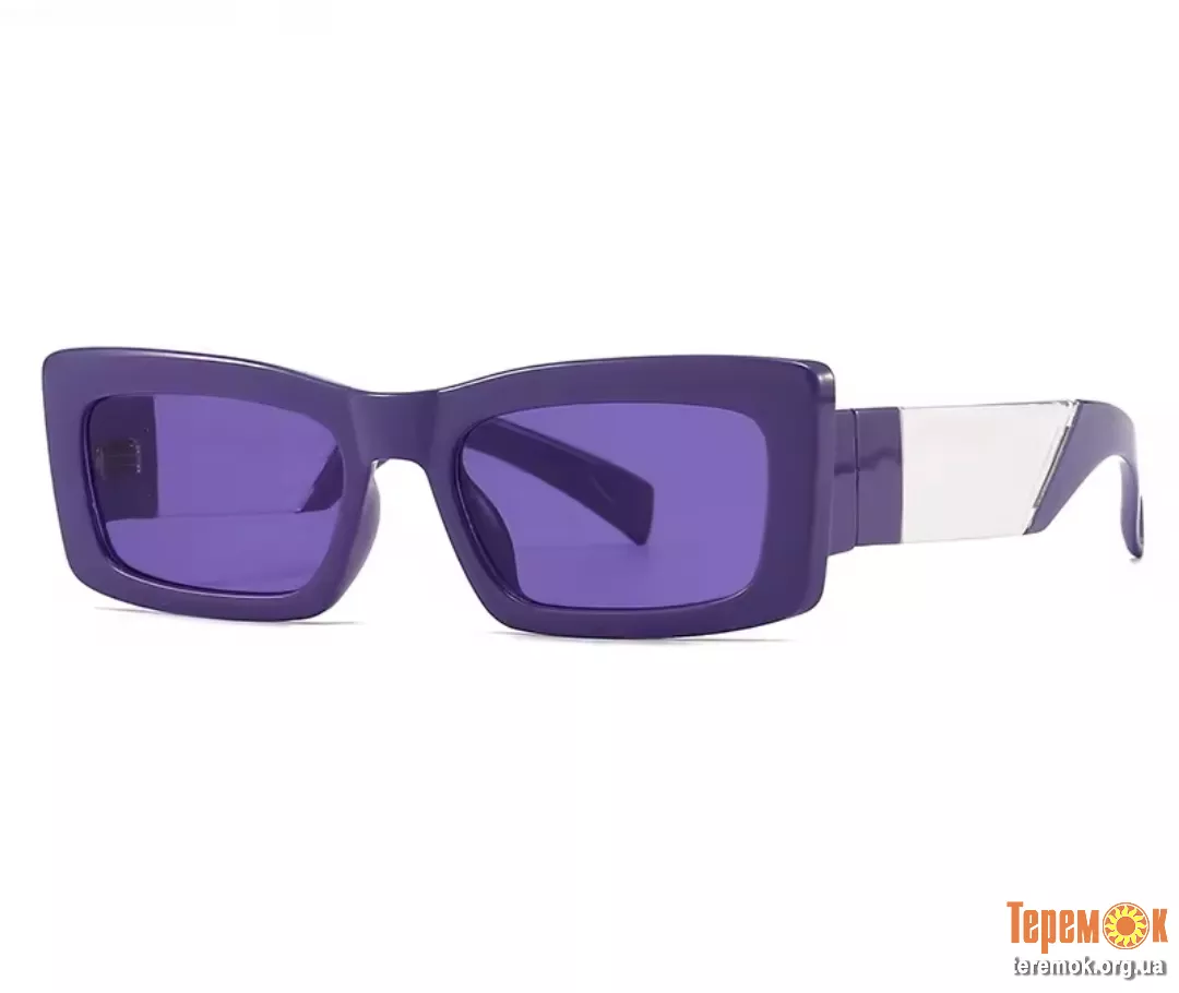 Круті яскраві, стильові фіолетові прямокутні сонцезахисні окуляри з широкими завушниками. Нові.