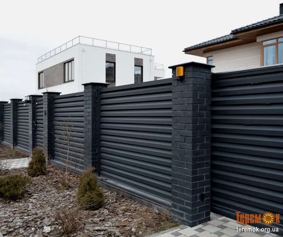 Виготовляємо під замовлення металеві жалюзі для паркану та воріт. Маємо в наявності метал рфзного кольору.