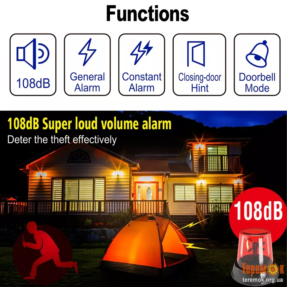 Бездротова сигналізація для дверей і вікон | 108 дБ охорона дому з магнітним датчиком