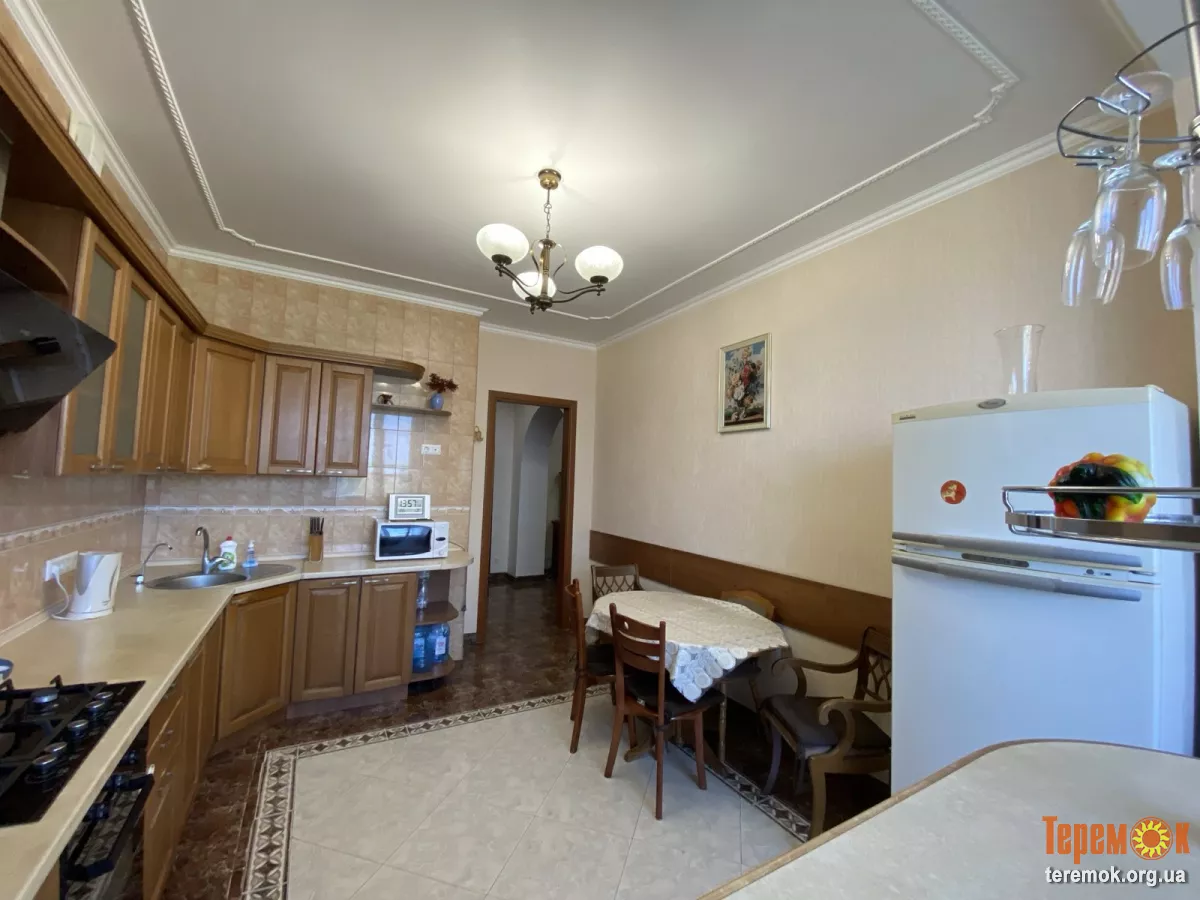 Три окремі спальні, просторий хол та 20м2 кухня. Ремонт виконаний у класичному стилі у світлих тонах.На підлозі ламінат, в кухні та коридорі плитка.