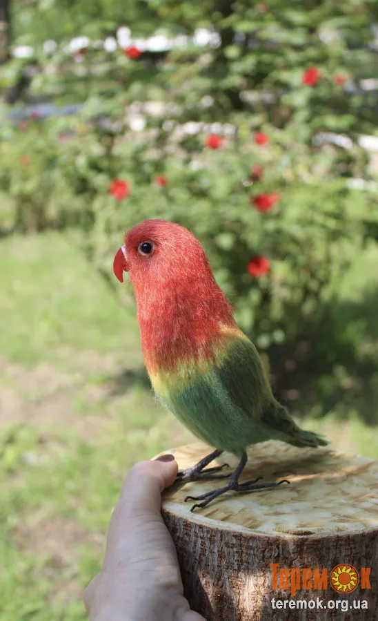 Неразлучник папуга іграшка валяна з шерсті інтерєрний попугай войлочний