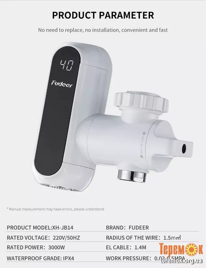 - Теги: нагрівач води без бака, компактний водонагрівач, водонагрівач адаптер, миттєвий водонагрівач, моментальний водонагрівач, електричний водонагрівач, водонагрівач IPX4, безпечний водонагрівач, кухня водонагрівач, електронагрівач води