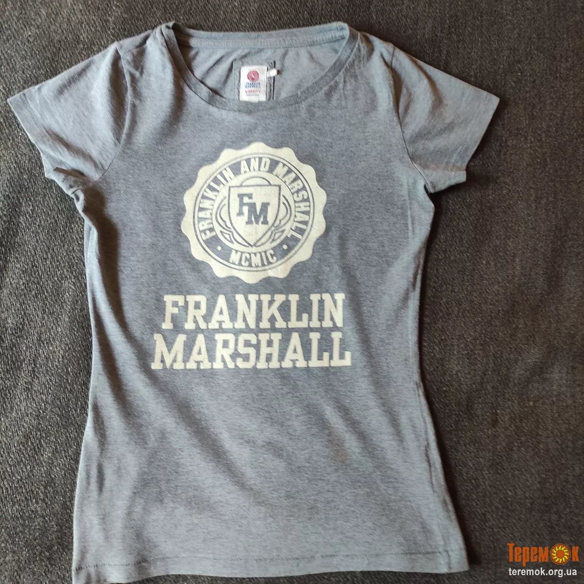 Футболка Franklin Marshall відтінку сірого кольору з коротким рукавом, виготовлена з бавовни.Размеры длина по спине60см,ширина в груди42см,длина рукава от плеча 14см,ширина в плечах34см.Оригинал.