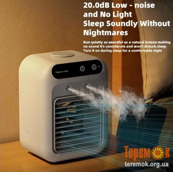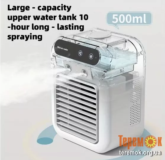 - Теги: вентилятор з водяним туманом, портативний вентилятор, настільний охолоджувач, охолодження повітря, USB вентилятор з акумулятором, вентилятор для дому, зволожувач з обдувом, вентилятор з розпиленням, охолоджувач повітря, міні кондиціонер