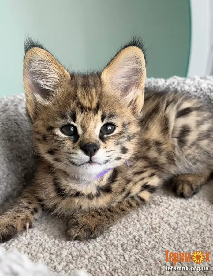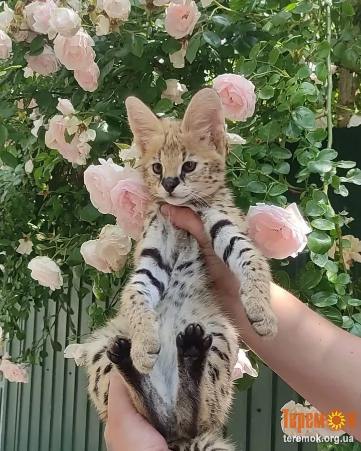 4-тижневі кошенята саванських сервалів та каракалів. Вони доступні та мають усі документи, автоматично легалізовані та успішно вакциновані. Вони добре ладнають з іншими тваринами та собаками, а також із задоволенням розділять час гри з вашими дітьми. Батьки: (на останніх фотографіях) Мати: Бріджит F1 Батько: сервал Для отримання додаткової інформації та фотографій, будь ласка, зв'яжіться з мною через WhatsApp: +33758605711 Електронна пошта: zara.poroschenko@gmail.com