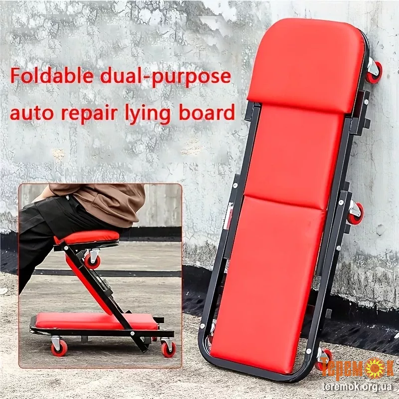 Цей багатофункціональний інструмент дозволяє працювати як у положенні лежачи, так і сидячи, ідеально підходить для ремонту та обслуговування автомобіля вдома або в автосервісі.