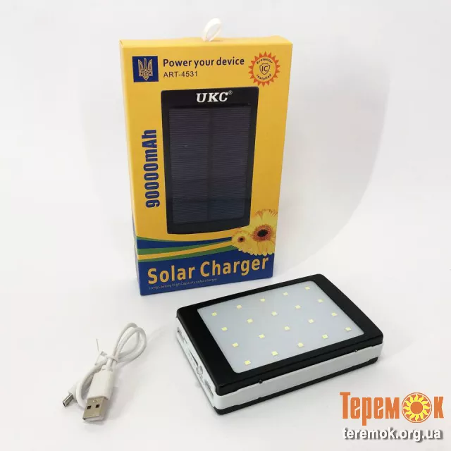 УМБ портативне зарядне Power Bank Solar UKC 90000 mAh з LED ліхтарем на сонячній батареї