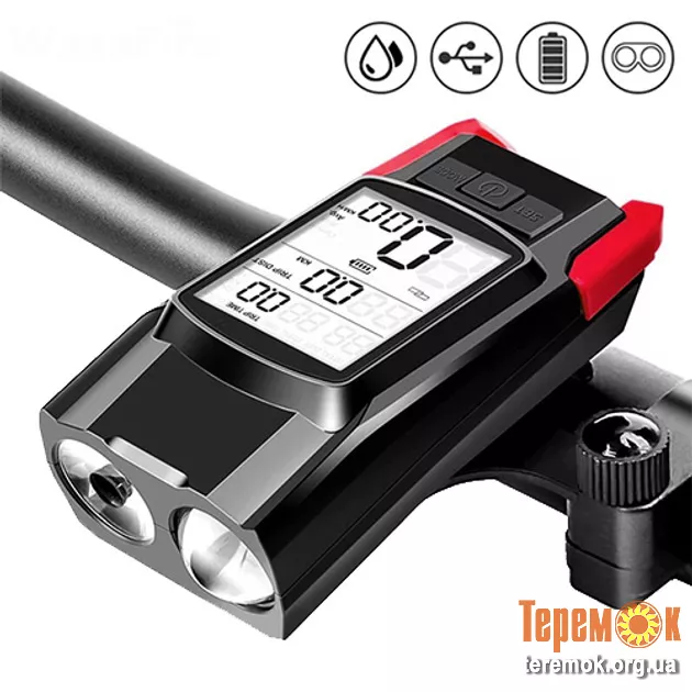 Велофара з комп'ютером та сигналом BK-1920-2T6 велоліхтар із виносною кнопкою