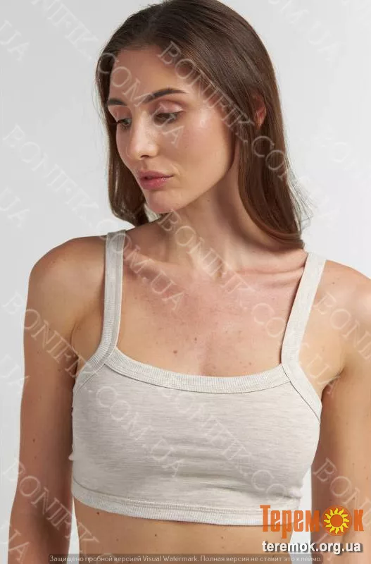 - Теги: топ жіночий бежевий, світлий топ, топ на кожен день, одяг для дому, укороченний топ, літній топ, трикотажний топ, базовий одяг, топ на широких бретелях, бавовняний топ