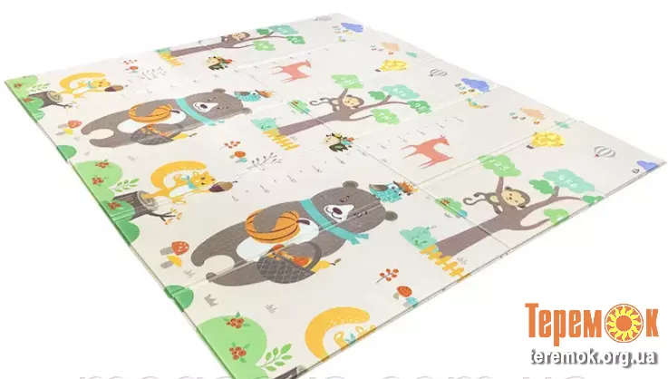 Задовольнить потреби дітей від самого народження до 7 років. Це універсальне складене покриття підійде для повзання, перших кроків, навчання та витівок. М'яка рифлена поверхня не пропускає холоду, зможе попередити падіння, захистить від травм і ударів, зробить масаж п'ят, поглине шум від стрибків.