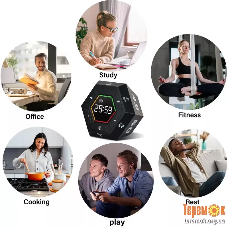 - Теги: розумний таймер, таймер, цифровий таймер, таймер для концентрації, кухонний таймер, таймер куб, таймер для дітей, таймер для офісу, магнітний таймер, таймер для роботи LED таймер