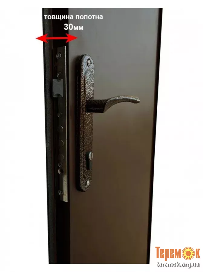 • Товщина дверного полотна: 30 мм, що забезпечує міцність та жорсткість