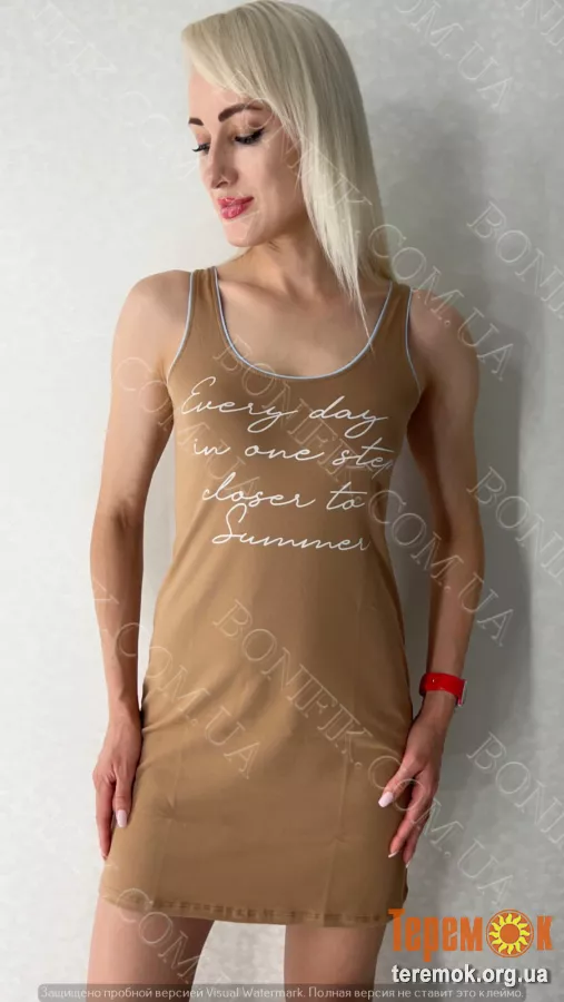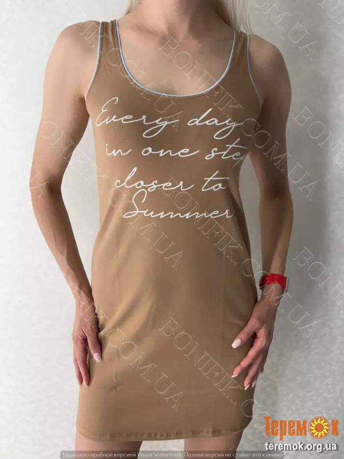 - Теги: жіноча нічна сорочка, карамельна нічнушка, нічна сорочка з написом, домашній одяг, трикотажна сорочка, літній нічний одяг, нічнушка без рукавів, сорочка для сну