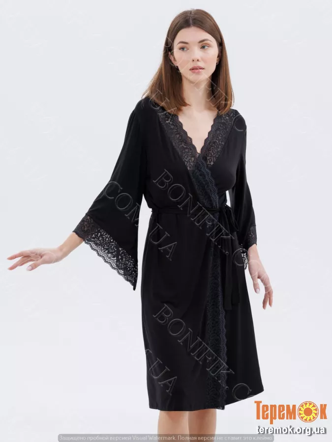 - Теги: елегантний халат, халат до коліна, халат з поясом, халат на запах, мереживний халат, халат з мереживом, жіночий чорний халат, домашній одяг