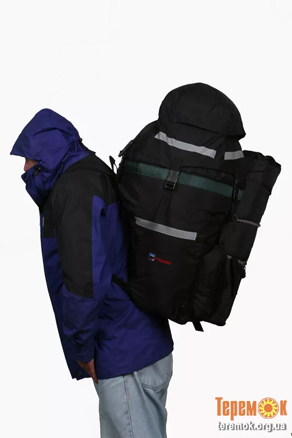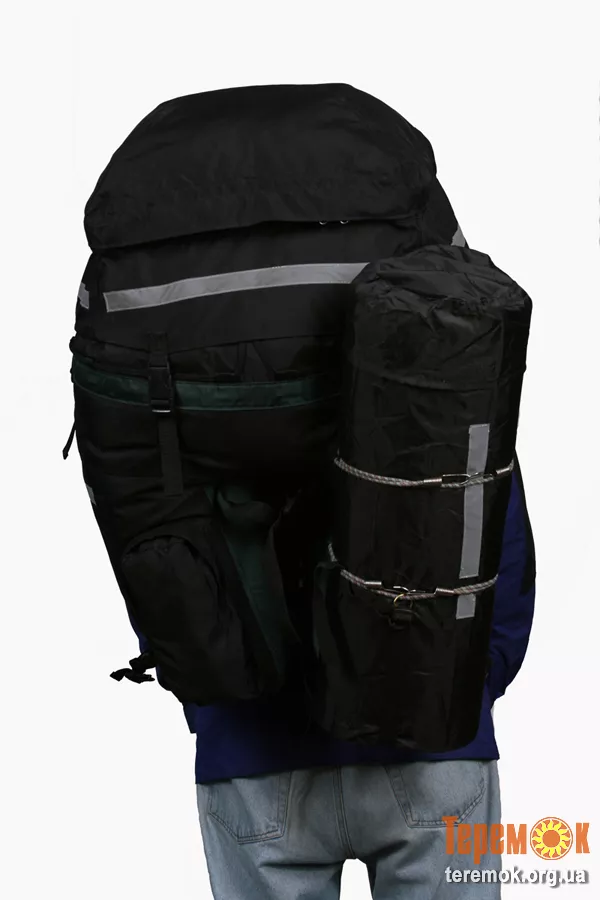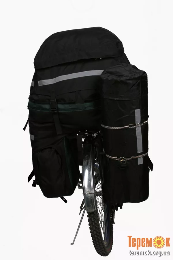 Косой срез к оси заднего колеса. Даже при большом размере обуви каблук не цепляется за рюкзак. Грузовые лямки фиксируются в отведенном положении. См фото № 1. Имеется крепёж каримата (коврика). Чехол для ижевского коврика в комплекте. Рюкзак 2-х этажный. Верх стягивается шнуром на танке. Клапан на шести застежках (фастек) и регулируется по высоте, в зависимости от загрузки рюкзака. 1 защелка для ремонта в комплекте. В «штанинах» со стороны колес вставлен каримат (коврик). Он мягкий и не рвет ткань . При переноске рюкзака на спине «штанины» состёгиваются. См фото № 3. В клапане есть карман для денег и документов. В малом кармана есть крепления для ключей от квартиры. Рюкзак крепится за багажник и подседельную трубу 2 ремнями. Регулируется вперёд-назад. Это быстро съёмная конструкция. Это важно при посадке в поезд, электричку. На рюкзак нашиты светоотражающие ленты.