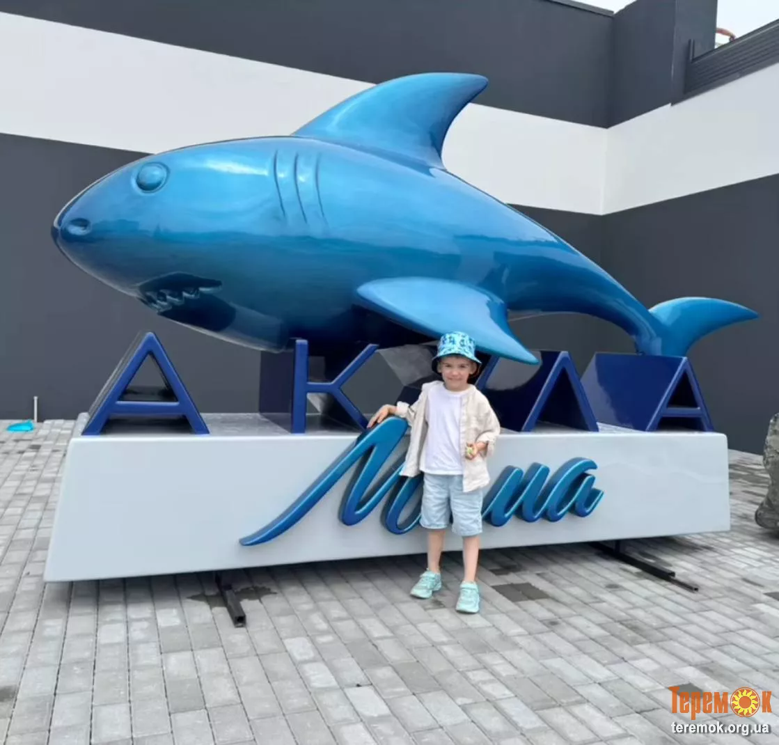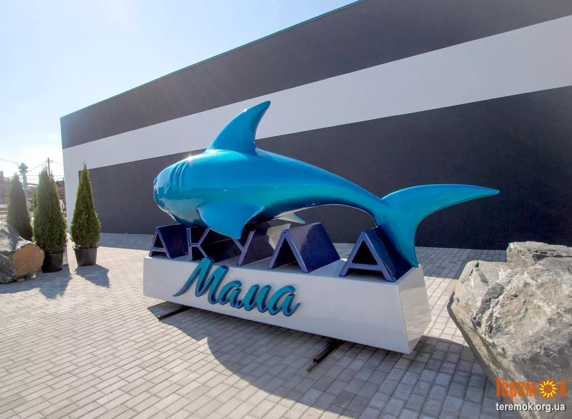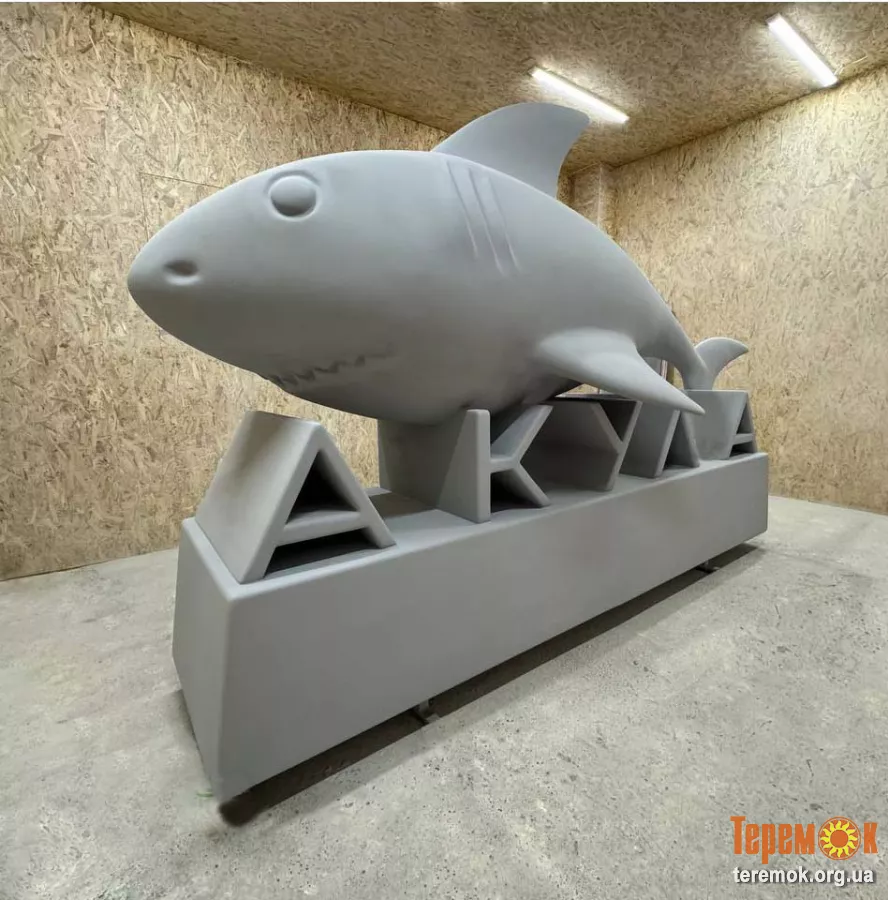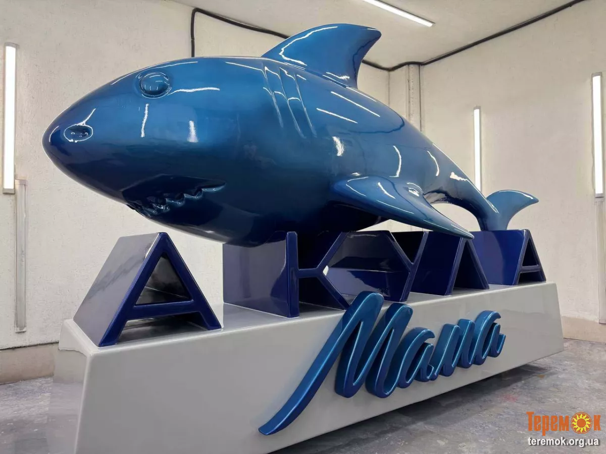 Скульптори студії «ОМІ» створили яскравий об’ємний логотип у формі акули для спортивно-розважального комплексу Akulamama