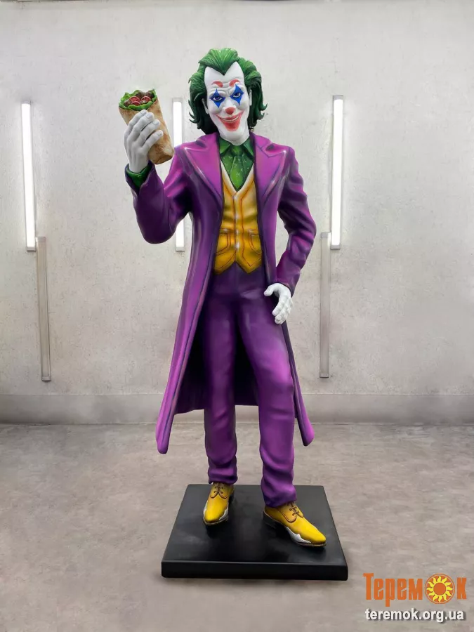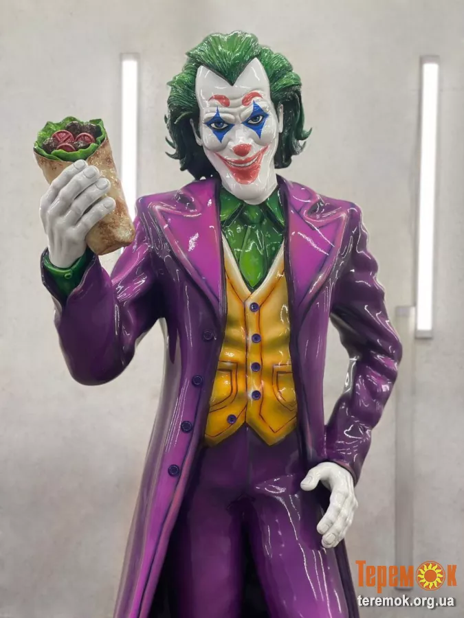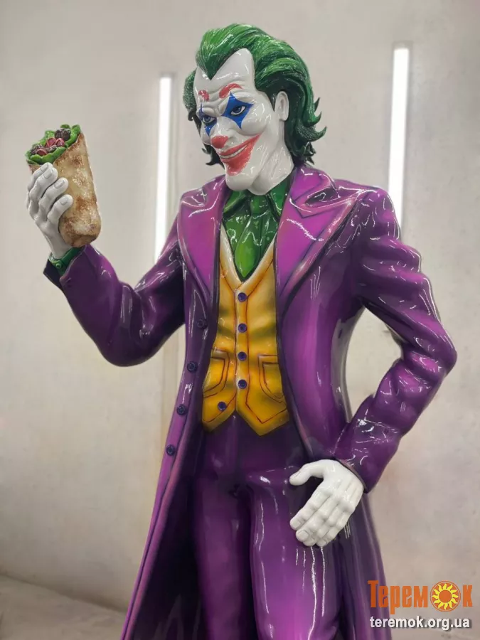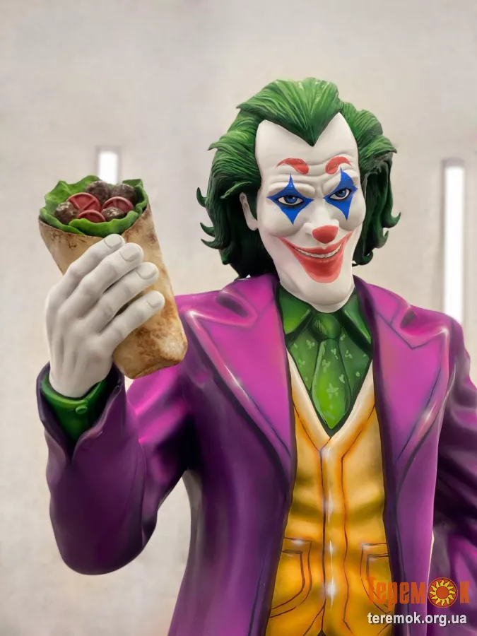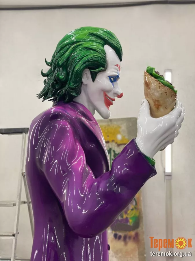 Скульптурна студія «ОМІ» завершила роботу над незвичайним рекламним об'єктом — фігурою Джокера, який тримає в руці шаурму. Скульптура виконана в натуральний зріст і призначена для використання в комерційних цілях — як вулична або інтер’єрна реклама.