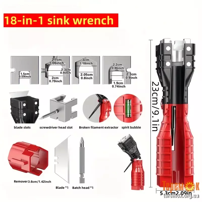 - Теги: багатофункціональний ключ, універсальний інструмент, ремонт сантехніки, універсальний ключ 18 в 1, сантехнічний ключ, ключ для водонагрівача, інструмент для сантехніків, ключ для раковини, ключ для труб, ключ для кранів