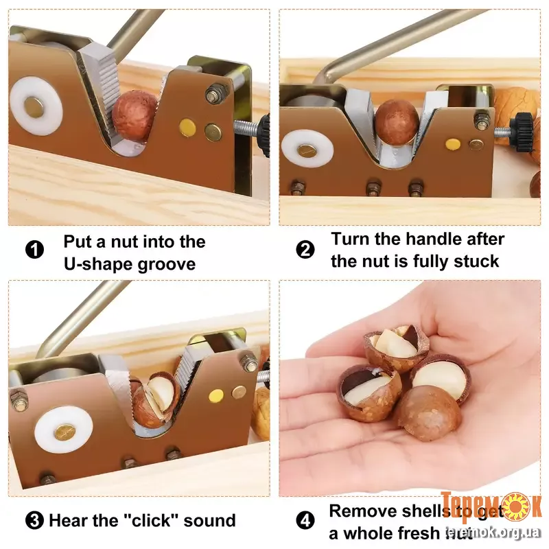Цей універсальний ручний горіхокол стане корисним аксесуаром на вашій кухні та чудовим подарунком для тих, хто цінує свіжі й цілі ядра горіхів.