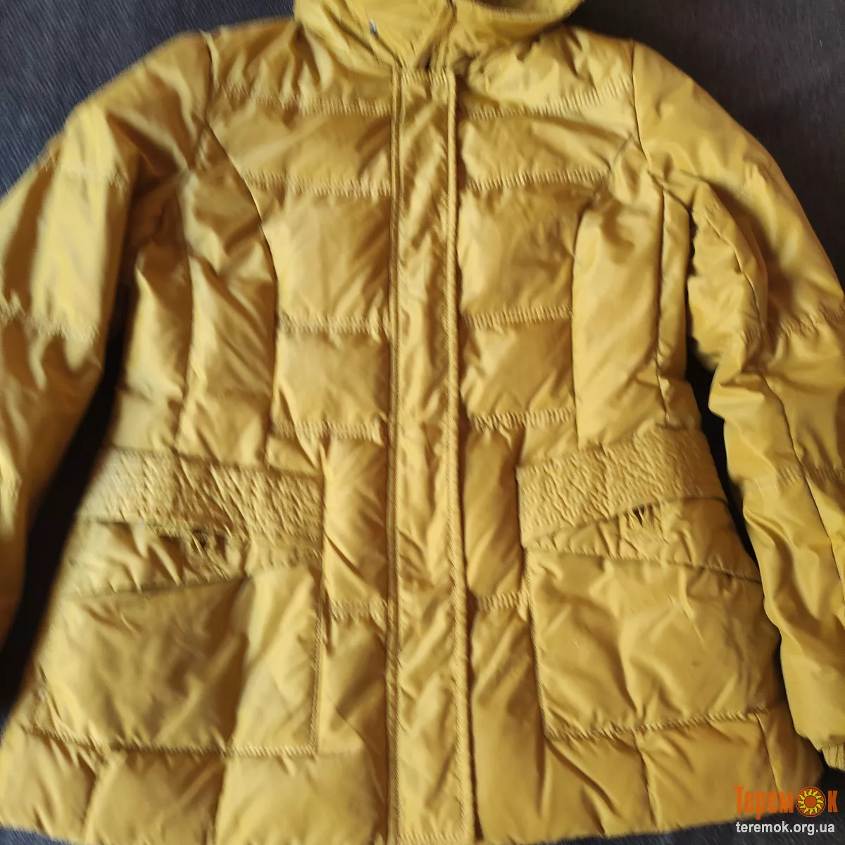 Женская желтая теплая куртка с капюшоном. Выгодное предложение по привлекательной цене. Размер 46-48.Длина 70 с м. Размер груди 54 см. Рукав 63 см. Талия 51 см. Низ 60 см.