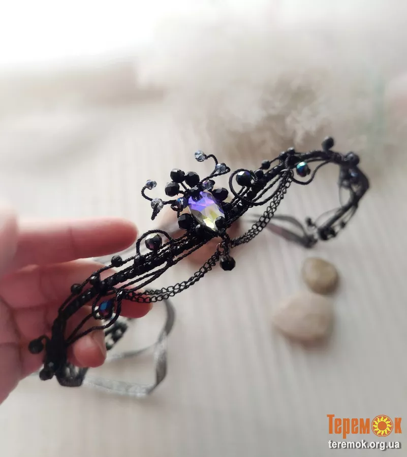 Фейрі чорний ланцюжки підвіски діадема фентезі казкові корона обруч волосся ельфійське івент сцена