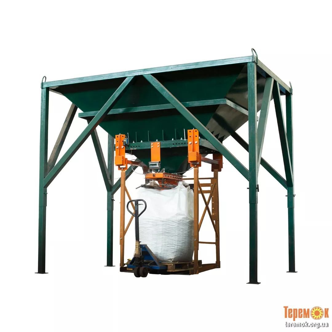 Обладнання призначене для фасування у мішки біг-бег до 1000 кг. Оригінальна система захвату строп з вузлом зважування та дозування має широкий діапазон регулювань, що дозволяє затарювати біг-беги з різними розмірами та конфігурацією. Переміщувати виважену продукцію рекомендується за допомогою навантажувача вилкового, ножичної рокли або штабелера. За бажанням клієнта можливе встановлення відцентрового вентилятора для роздування біг-бегів.