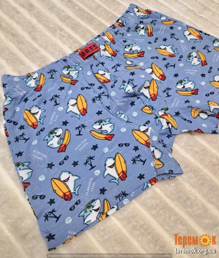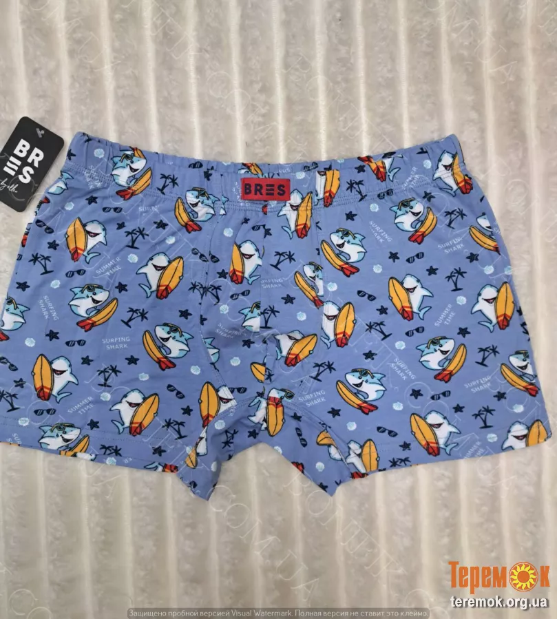 - Теги: бавоняні боксери BRES, чоловічі боксери, стильна чоловіча білизна, спідня білизна з принтом, боксери з малюнком, чоловіча білизна акули