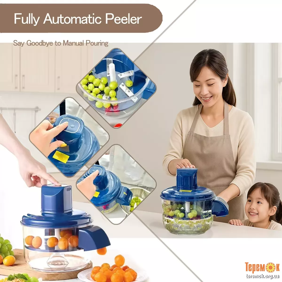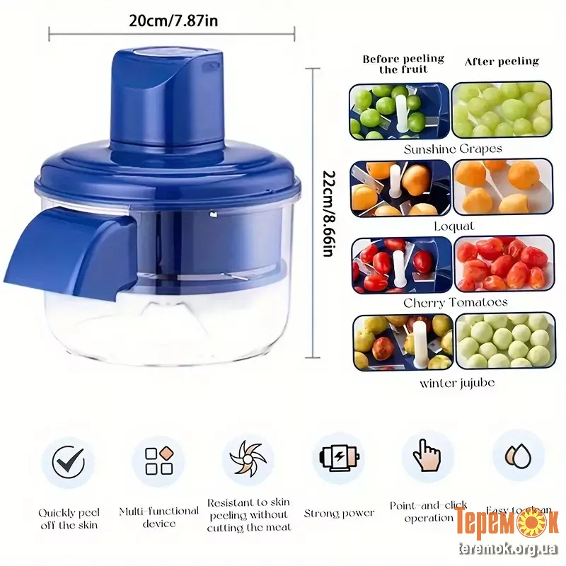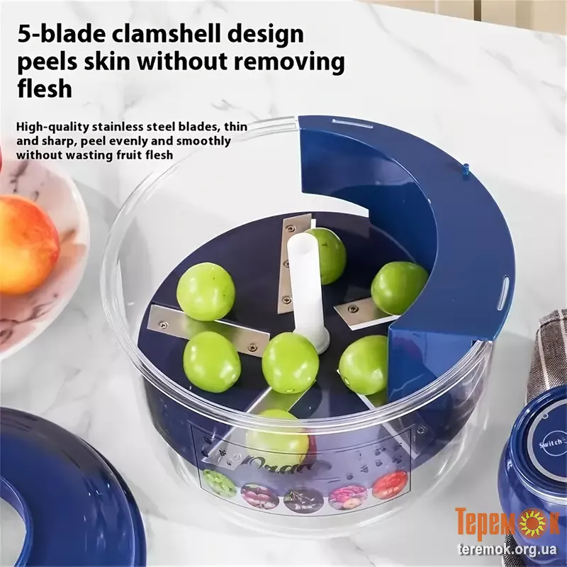 Електрична машина для чищення фруктів та овочів – це сучасний гаджет, що дозволяє швидко та легко очищати продукти від шкірки всього за 20 секунд.