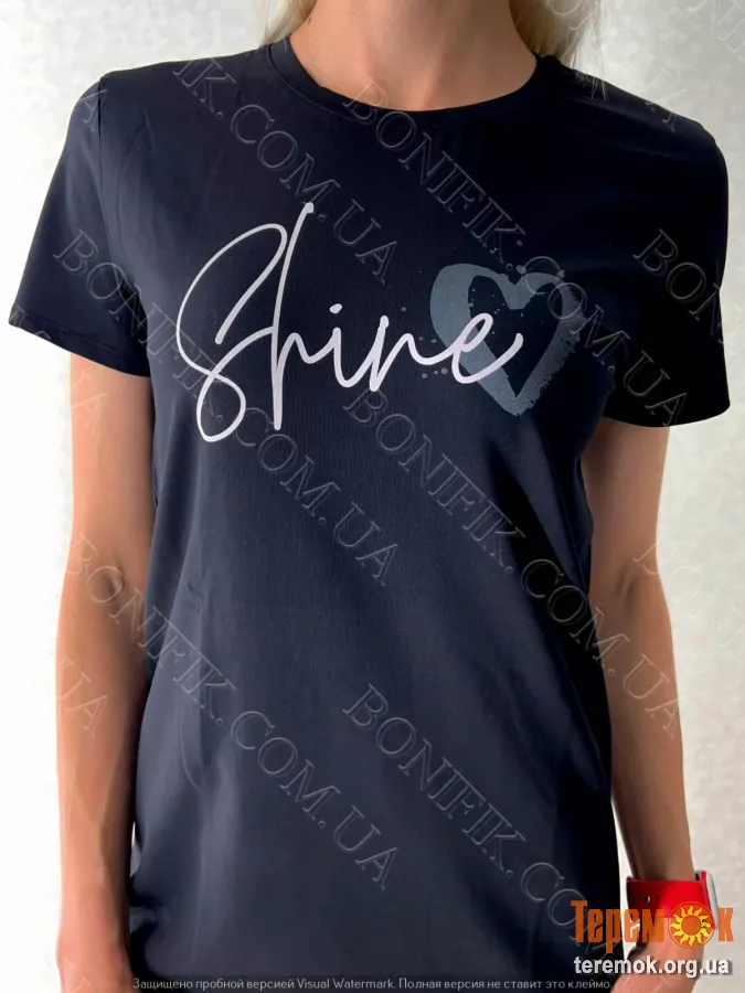 Мінімалістичний фасон з короткими рукавами і написом Shine на грудях роблять образ яскравим і впевненим.