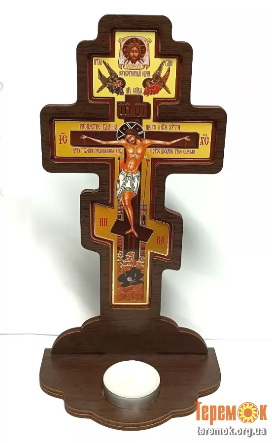 Розп'яття. Матеріал: дерево, літографія поглиблена всередині, свічка. Розмір 25 х 13 см., ціна 120 грн