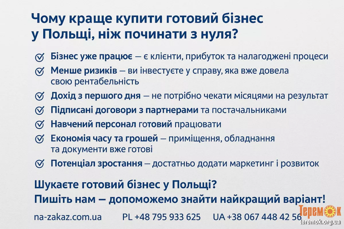 Шукаєте готовий бізнес у Польщі? Пишіть – допоможемо знайти найкращий варіант!