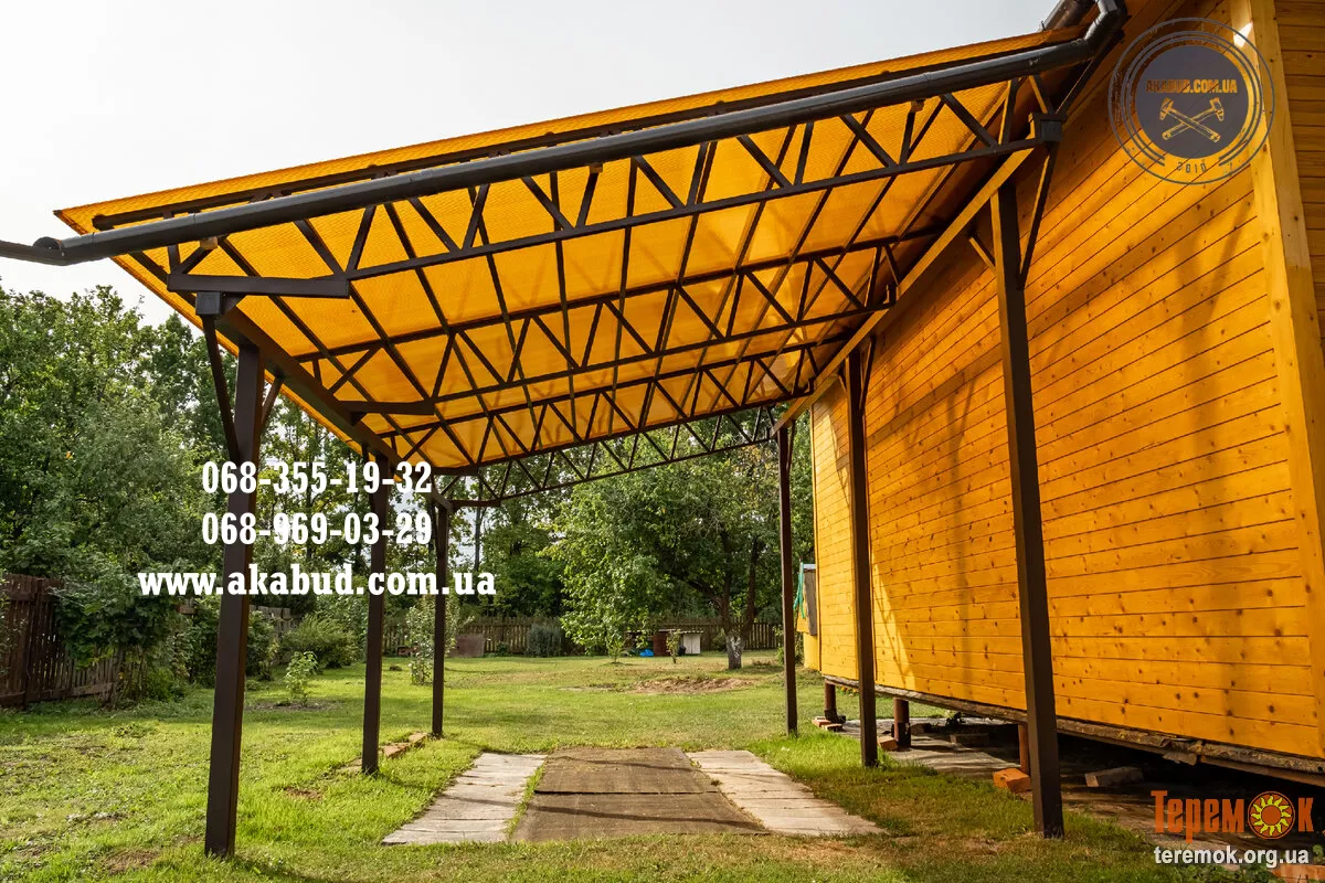 Навесы – для авто, террасы, зоны отдыха; арочные, односкатные, двускатные; поликарбонат, металл, ковка.